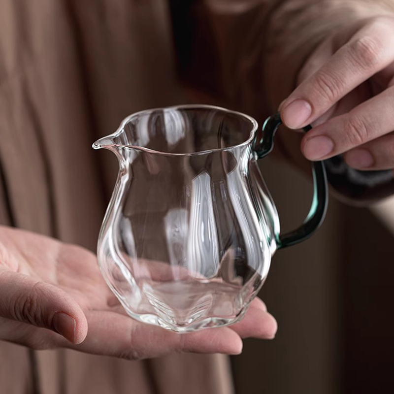 耐热玻璃公道杯公杯分茶器梅花茶海功夫茶具套装带手柄瓜棱公道杯