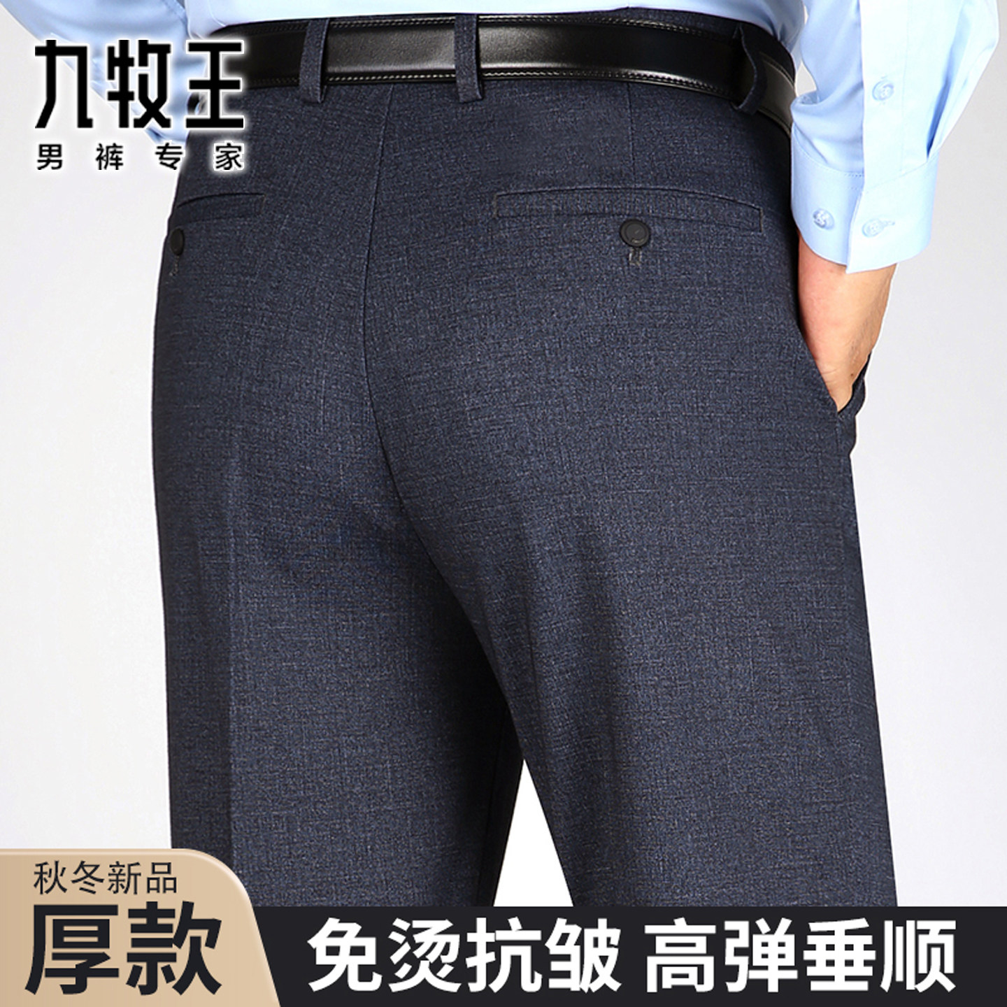 九牧王弹力休闲裤中老年秋冬厚款加绒高腰宽松男裤抗皱免烫爸爸裤