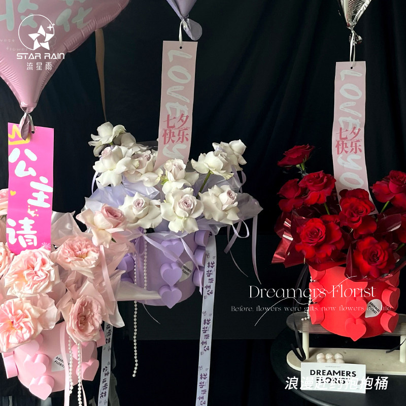 流星雨爱心鲜花抱抱桶花桶