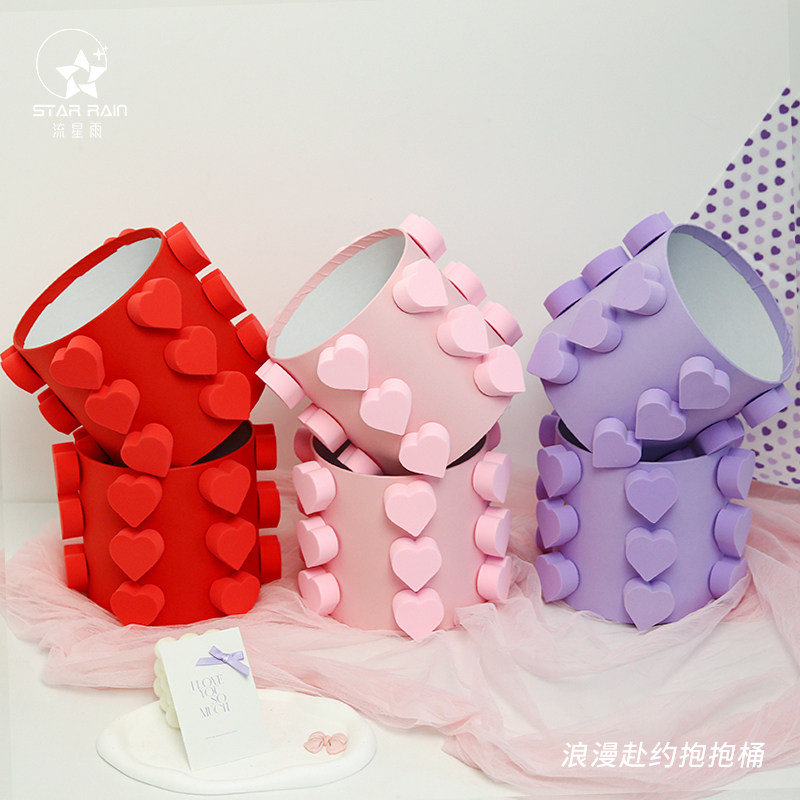 流星雨爱心鲜花抱抱桶花桶花束包装盒花盒礼盒空盒插花桶花艺资材