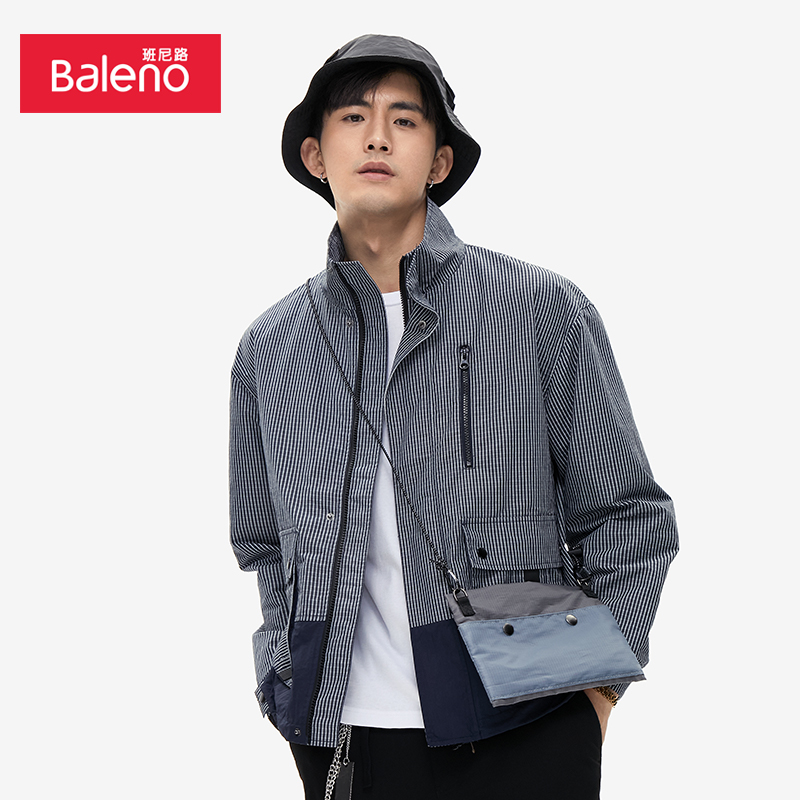 班尼路秋季新品男装休闲时尚前胸特色口袋拼接装饰舒适夹克男