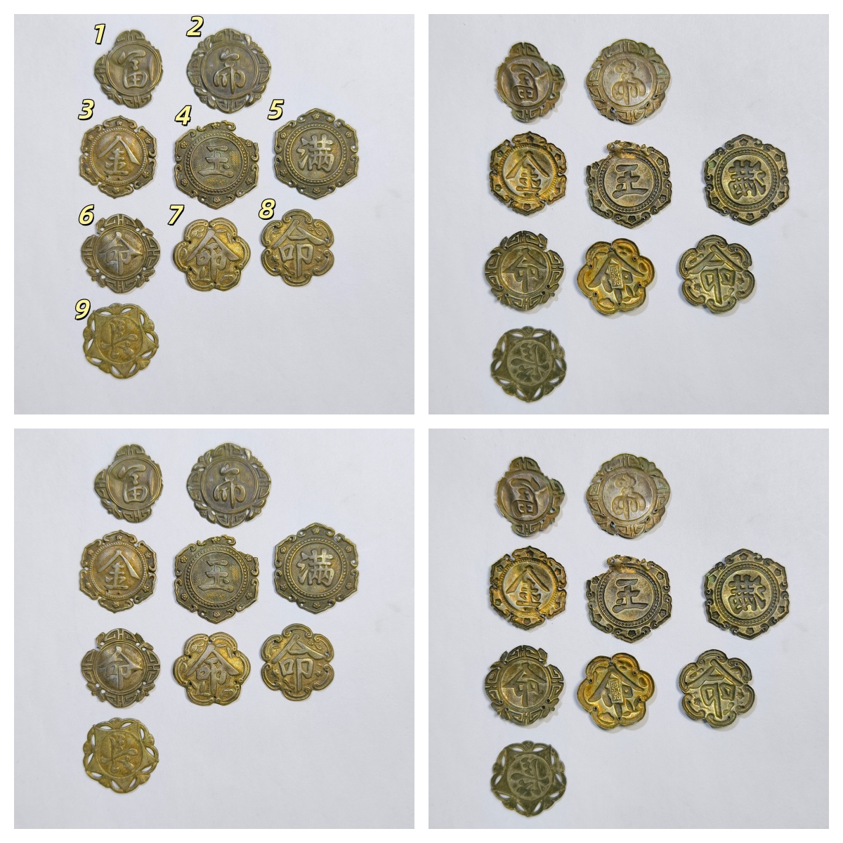大清朝代长命富贵金玉满堂字套装帽花鎏金银饰古董老收藏真品文玩