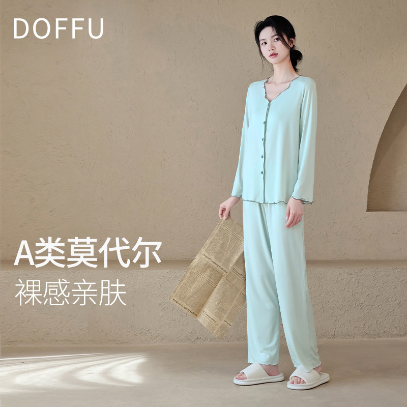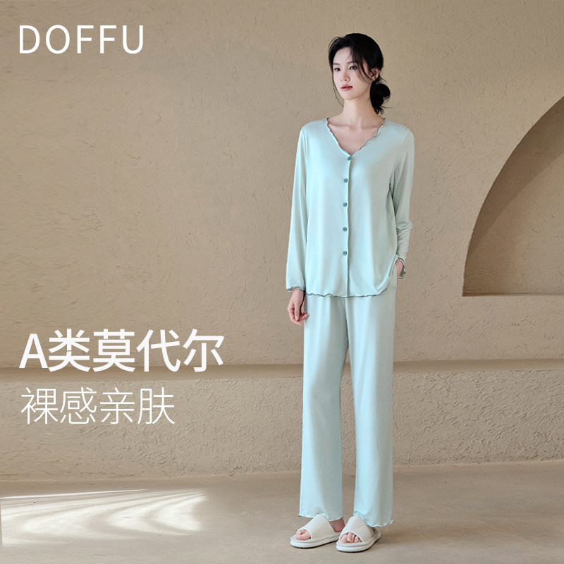 莫代尔睡衣女款2026新款夏季女士家居服带胸垫超软长袖高级感薄款
