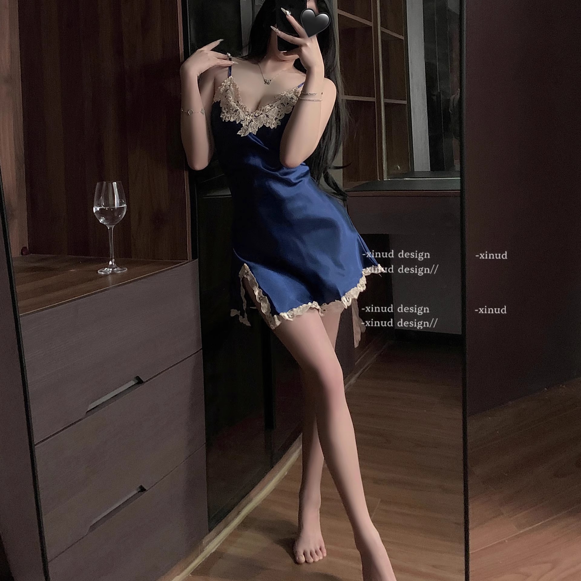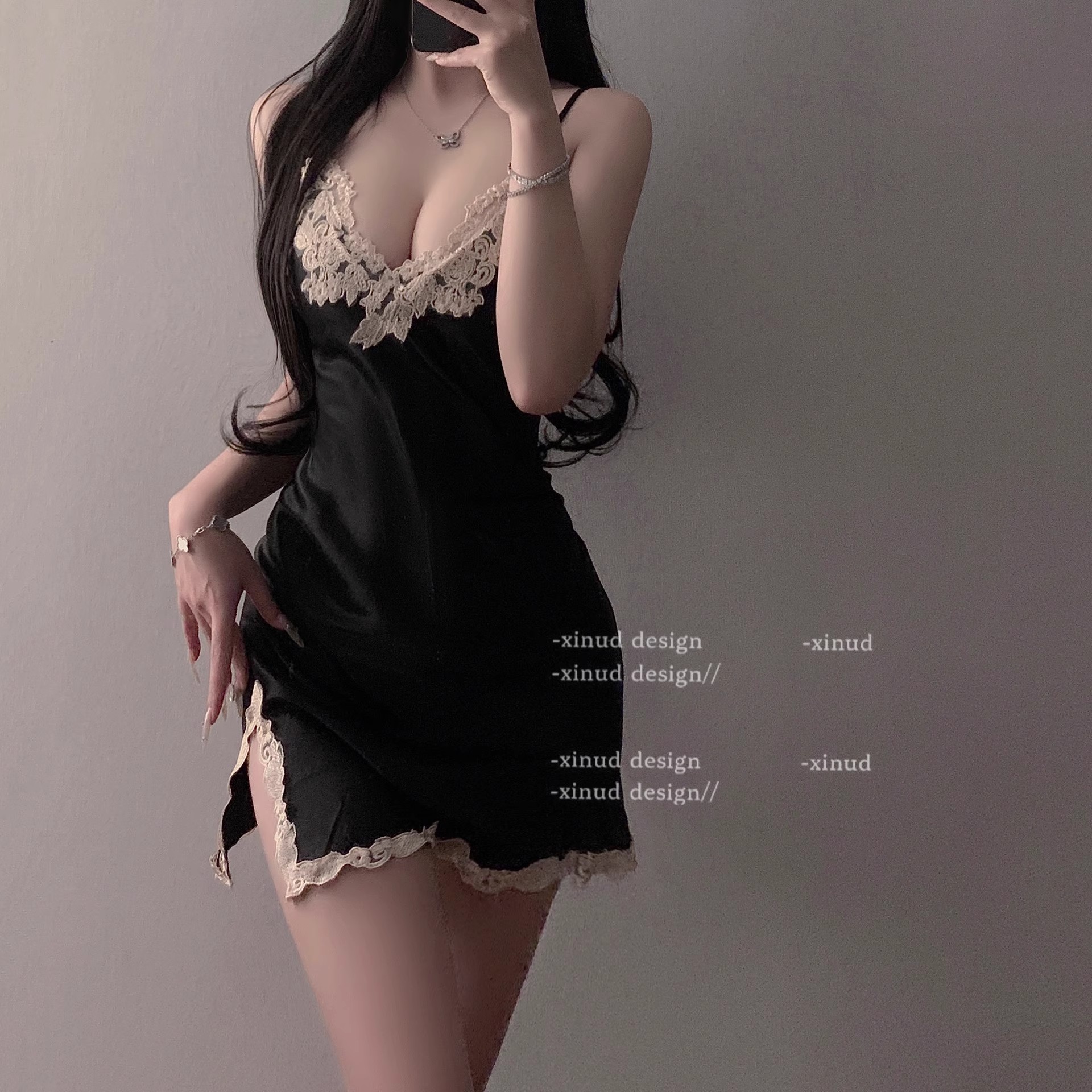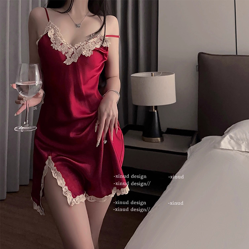 ZNDM 娇奢姐姐 2024新款性感睡衣女纯欲显瘦蕾丝拼接缎面吊带睡裙