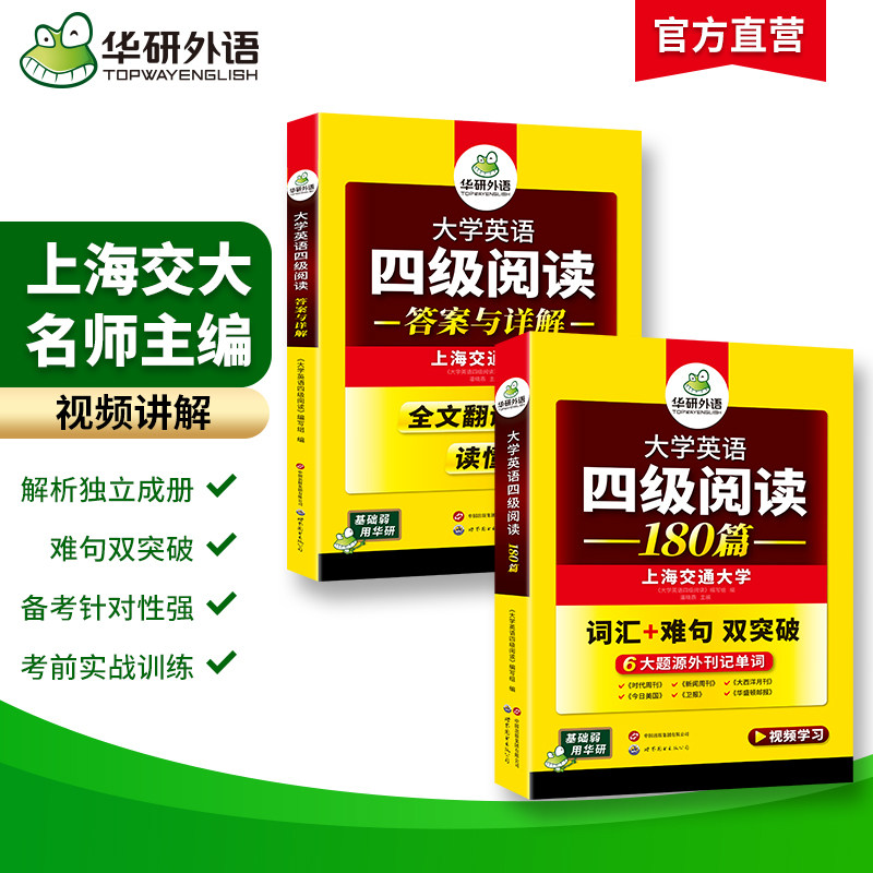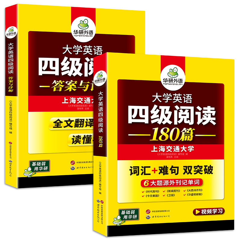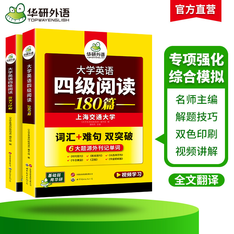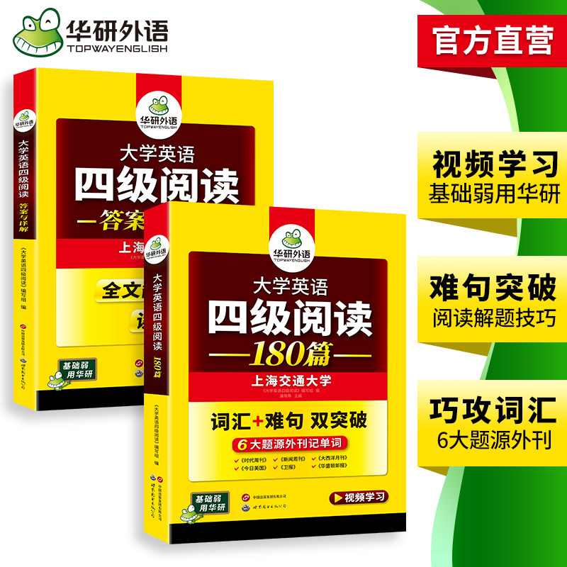 华研外语英语四级阅读专项训练备考2026年6月大学英语四六级阅读理解180篇强化词汇单词考试历年真题试卷听力翻译写作文书cet46