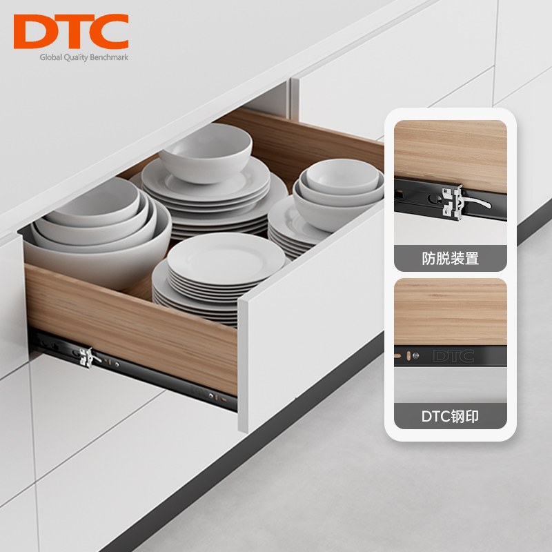 DTC东泰抽屉轨道滑轨三节轨反弹走珠导轨45mm