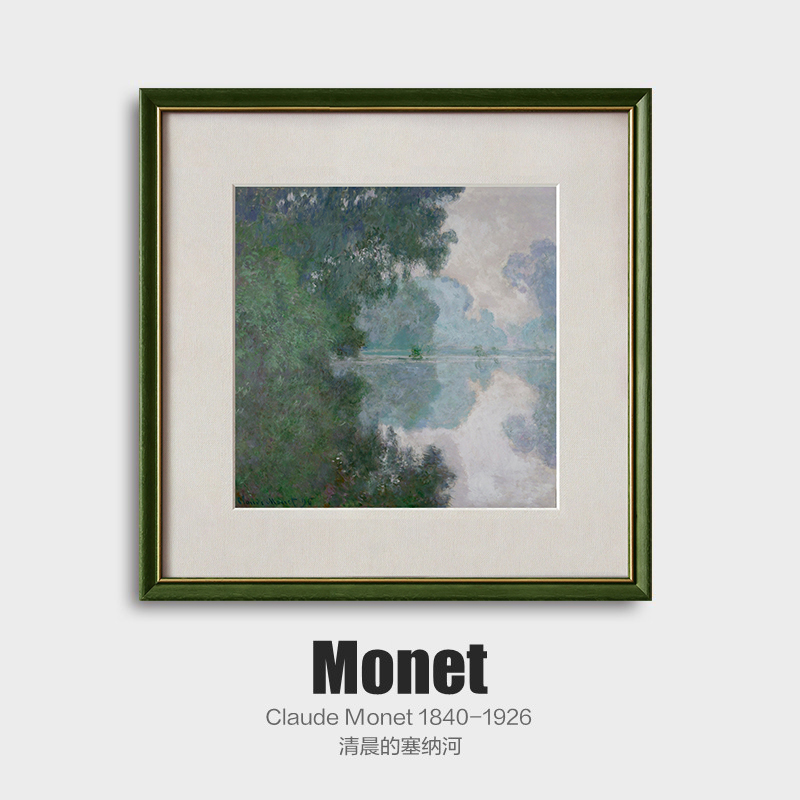 客厅挂画莫奈清晨塞纳河现代简约小众复古书房沙发油画风格装饰画