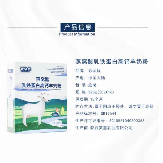 妙朵优燕窝酸乳铁高钙羊奶粉