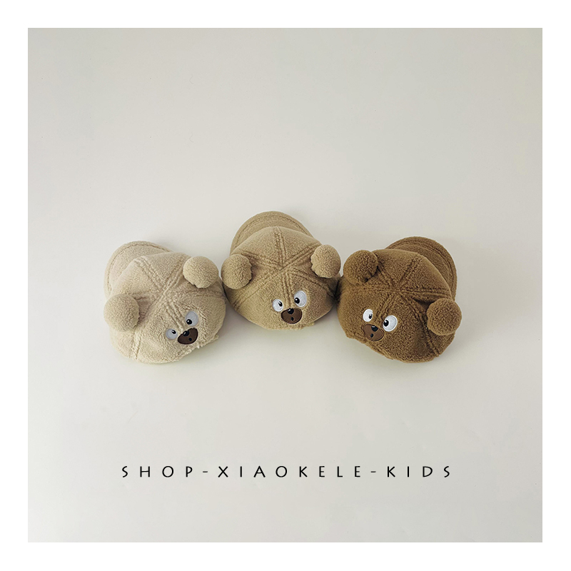 儿童棒球帽秋冬款羊羔毛可爱小熊