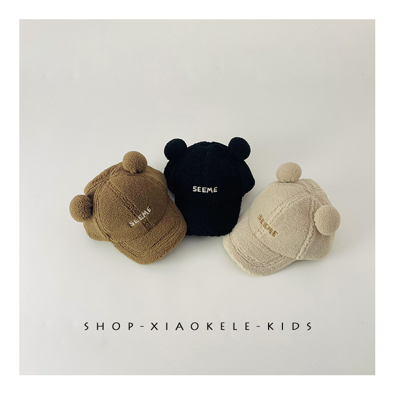 儿童棒球帽秋冬款羊羔毛可爱小熊男宝鸭舌帽冬季保暖男童女童帽子