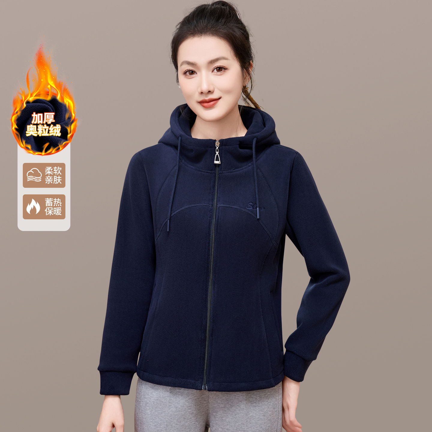 加绒加厚女士外套2025冬季新款连帽保暖上衣休闲百搭运动开衫卫衣