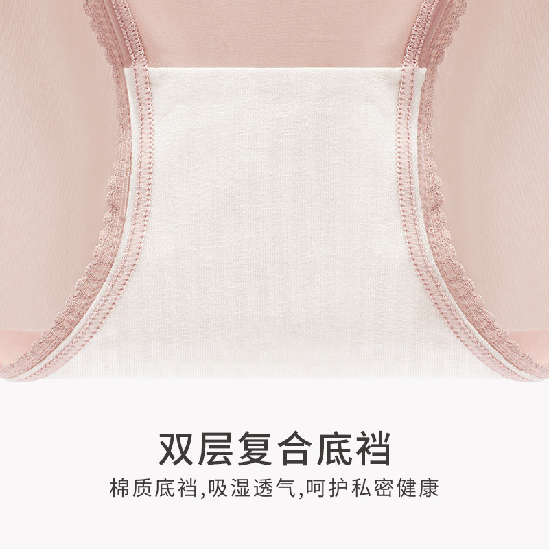 彩田女士内裤性感蕾丝三角内裤女中腰大码纯色冰丝少女非无痕短裤