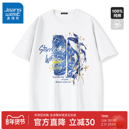 GV真维斯重磅男士短袖t恤夏季新款白色纯棉青少年上衣男款半袖男A