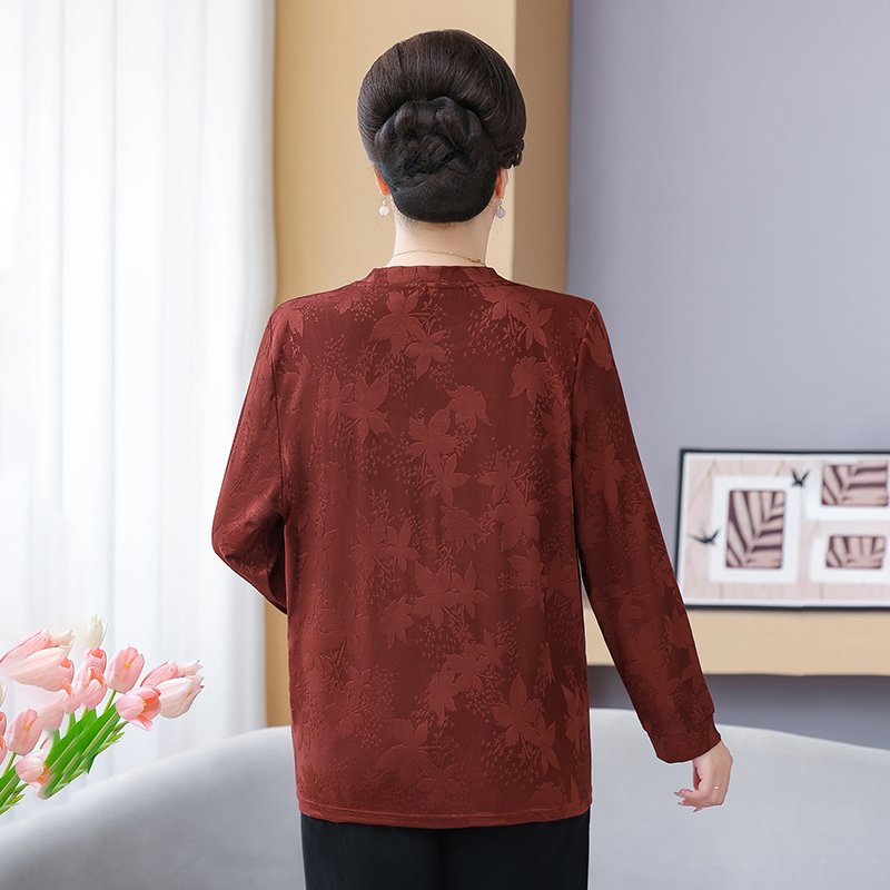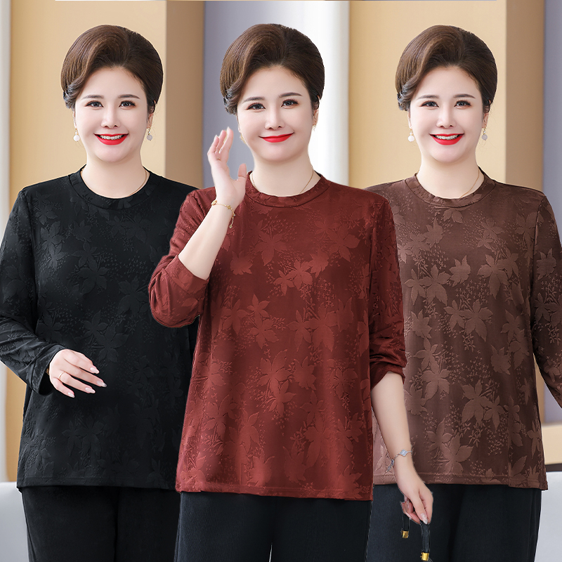 高端大码妈妈装春秋长袖t恤200斤女套头打底衫中老年上衣宽松遮肉