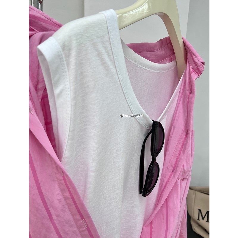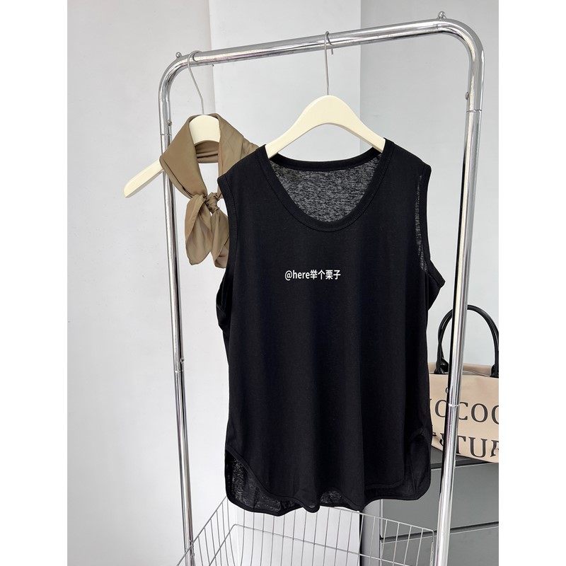 大U领纯色无袖坎肩背心T恤女夏季上衣宽松大版中长款休闲百搭洋气