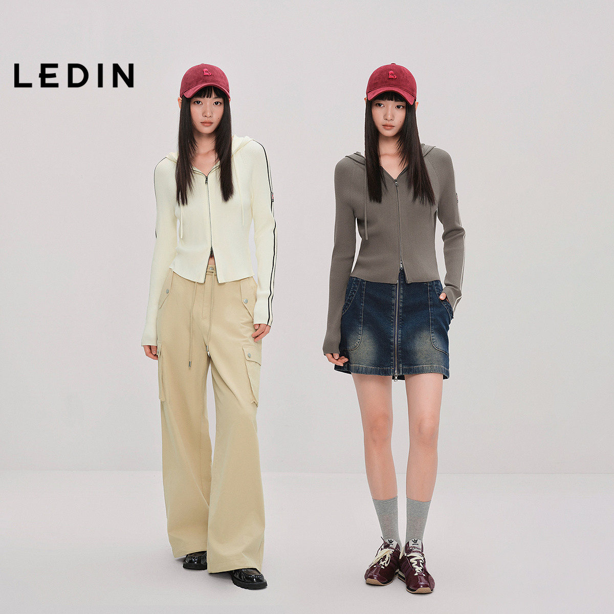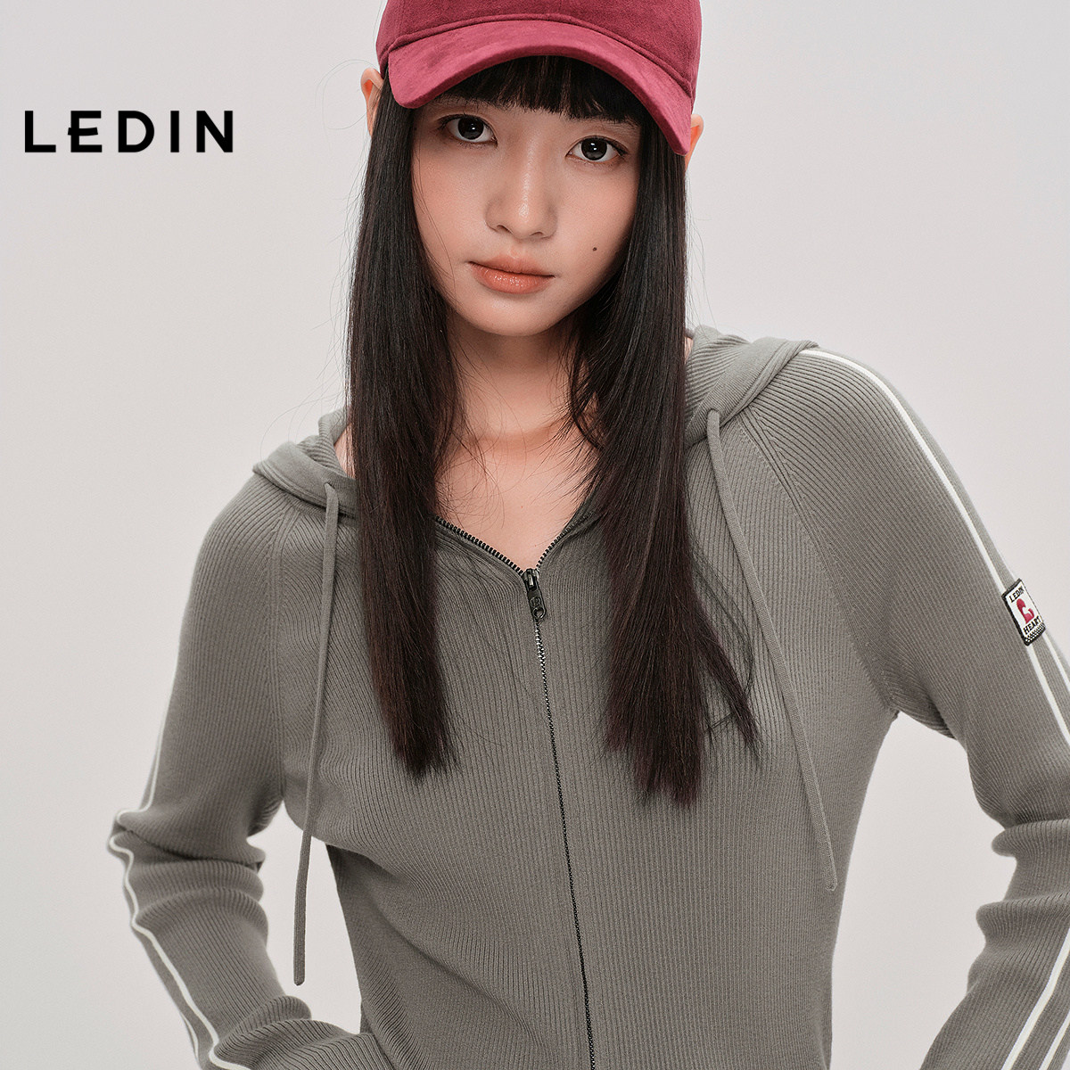 【商场同款】乐町连帽修身针织开衫秋季新款双拉链外套C2EDF3523