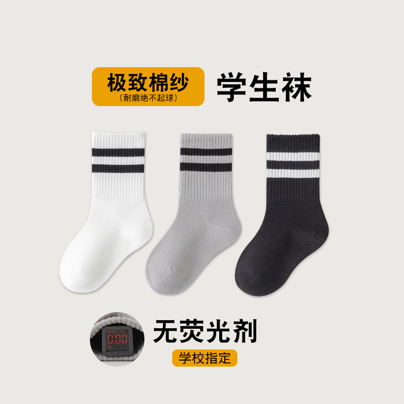 儿童袜子男童女童黑色纯棉中筒袜秋冬学生袜长筒袜宝宝棉袜白色袜