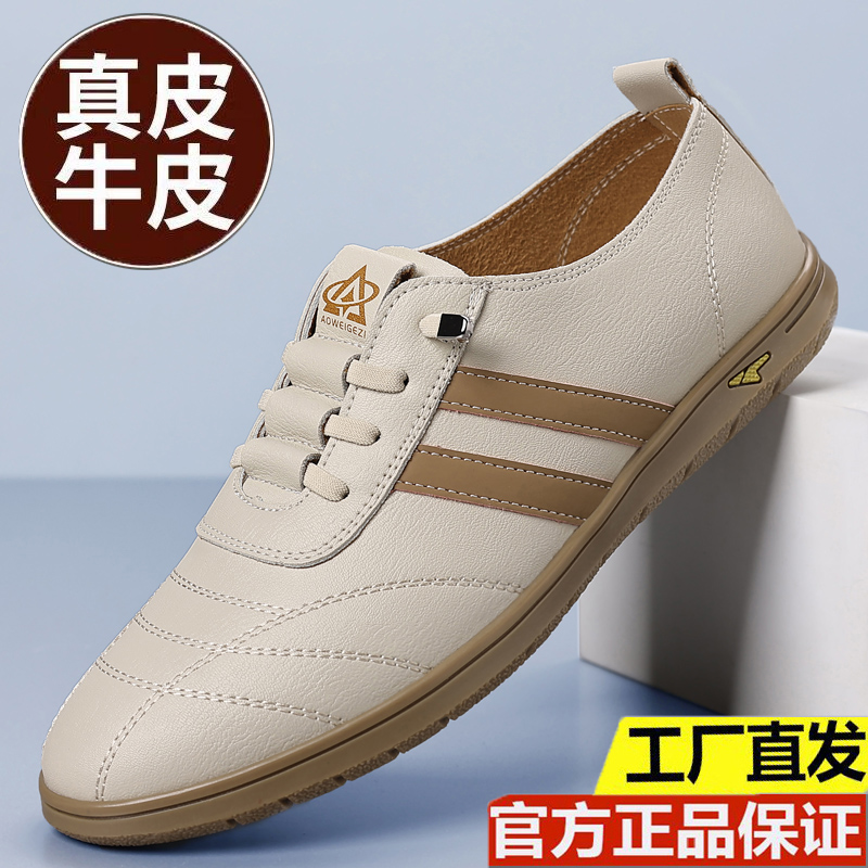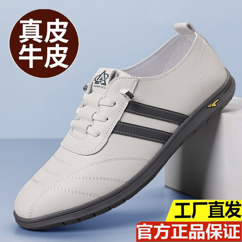 皮鞋男2025新款真皮透气商务休闲鞋小白鞋子男春秋软底白色豆豆鞋
