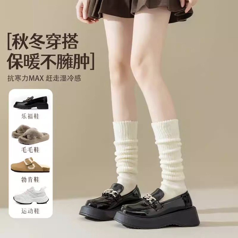 白色堆堆小腿袜子女秋冬美腿显瘦腿套加绒加厚纯棉保暖长筒靴袜套