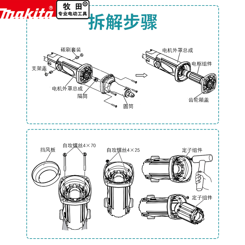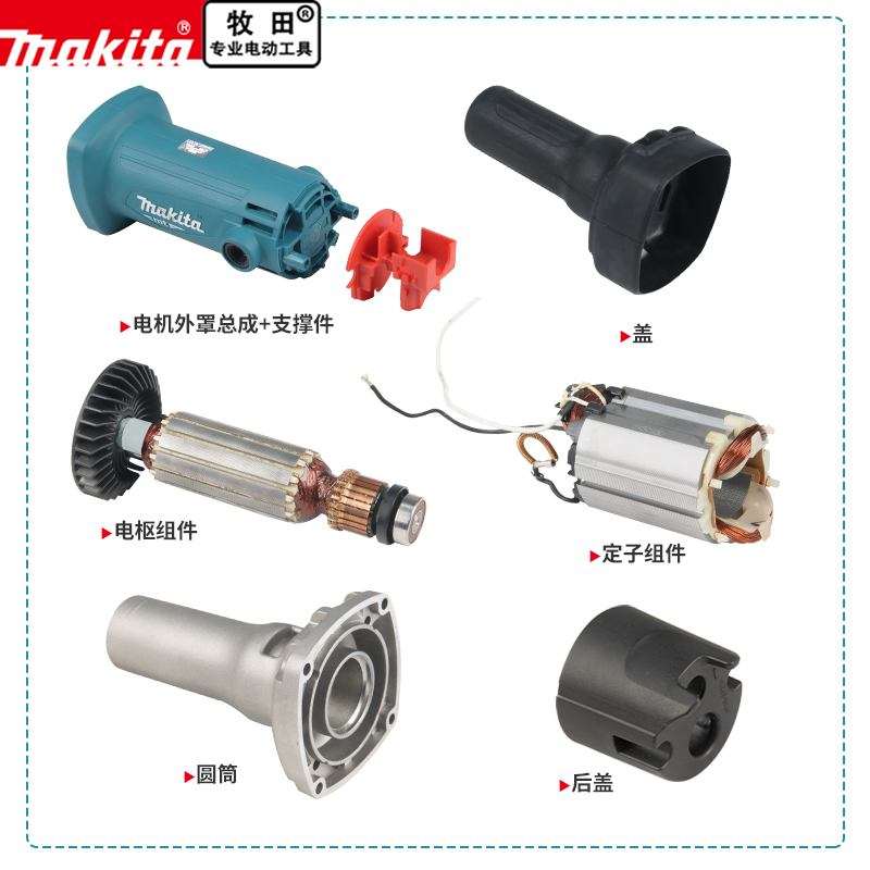 makita牧田直磨机原厂配件M9100定转子开关碳刷机壳筒夹螺母轴承