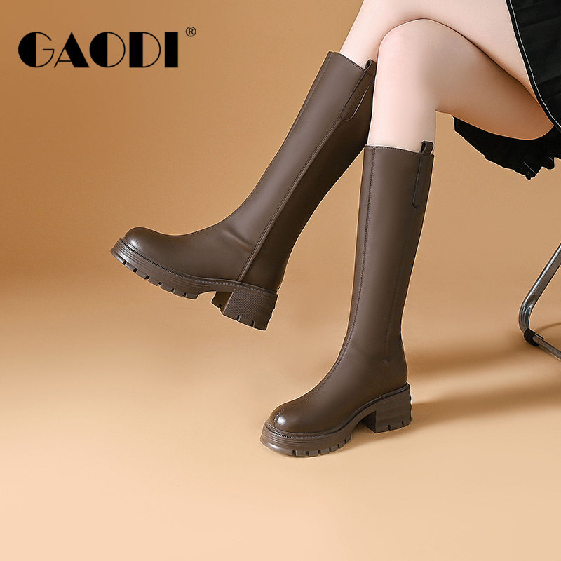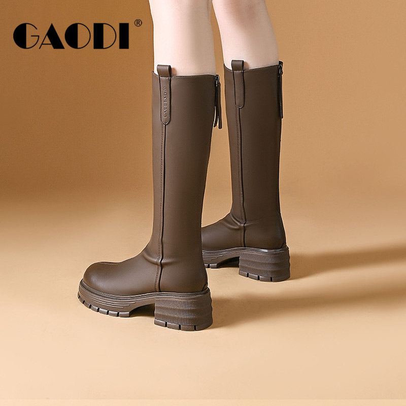 高蒂厚底长筒靴女骑士靴冬季不过膝长靴高筒靴瘦瘦靴粗跟时装靴