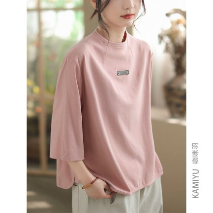 咖咪羽T恤女夏装新款休闲纯色女士韩版简约圆领宽松大码女装短袖