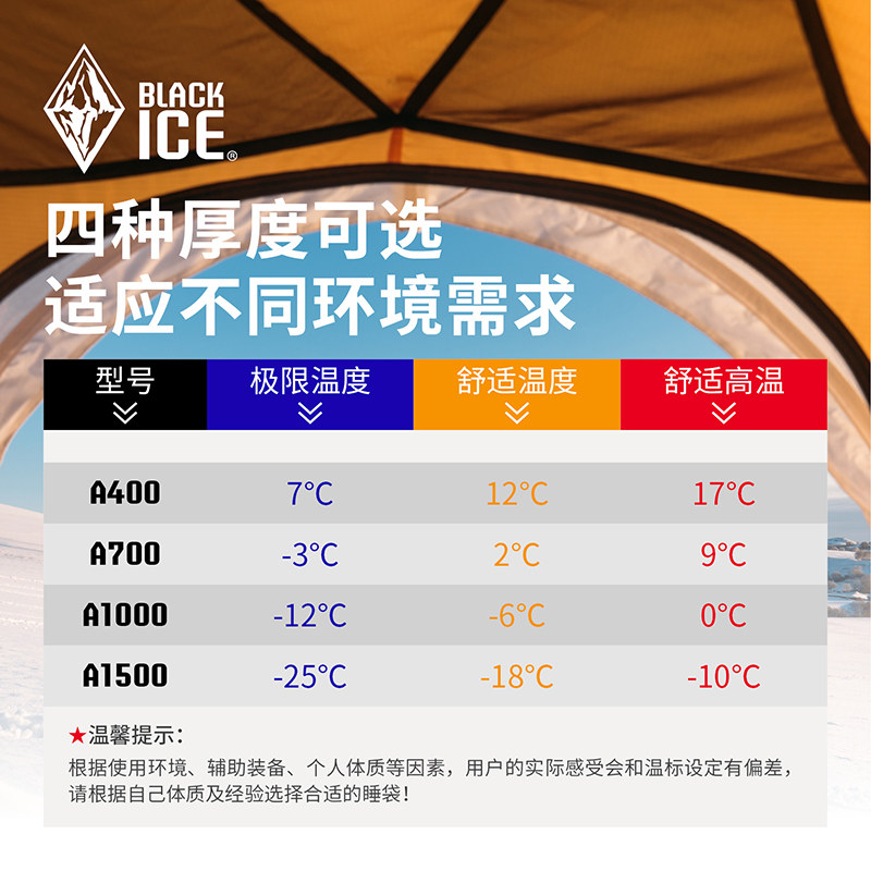 黑冰A系列A400/A700鸭绒成人单人信封便携式户外精致羽绒露营睡袋