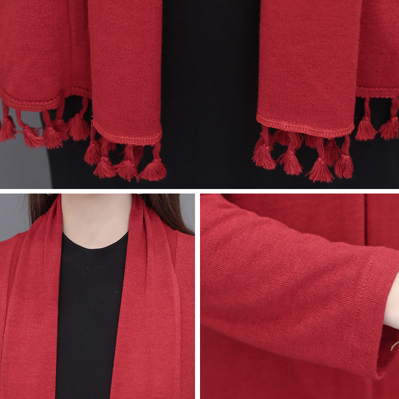 中长款长袖小披肩早秋针织外套流苏小外搭轻薄空调衫罩衫纯色外搭