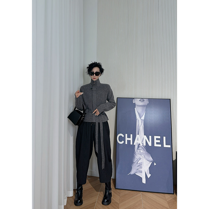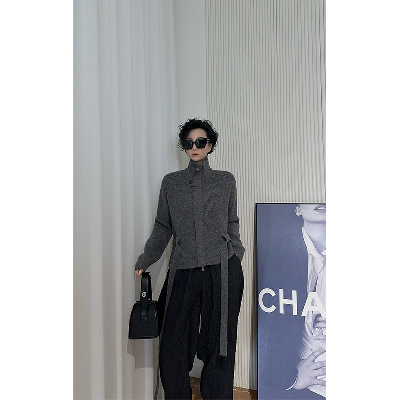 Dan Dan 极简风灰色高领拉链针织毛衣女 开衫显气质外套