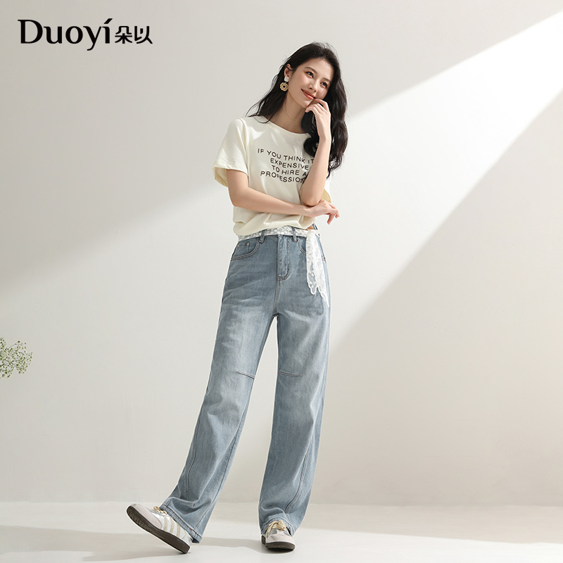 朵以2025夏季新款复古新潮高腰皮标显瘦阔腿牛仔裤镰刀裤弯刀裤女