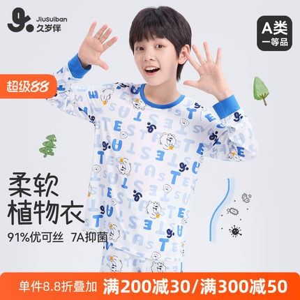 久岁伴男童秋衣秋裤2025新款中大童保暖内衣套装秋冬薄款男孩睡衣