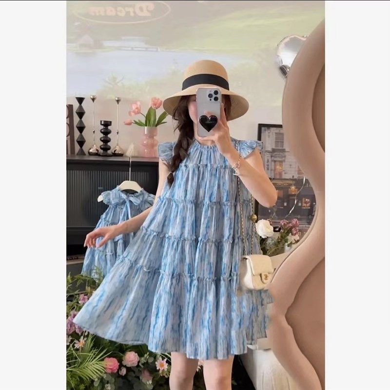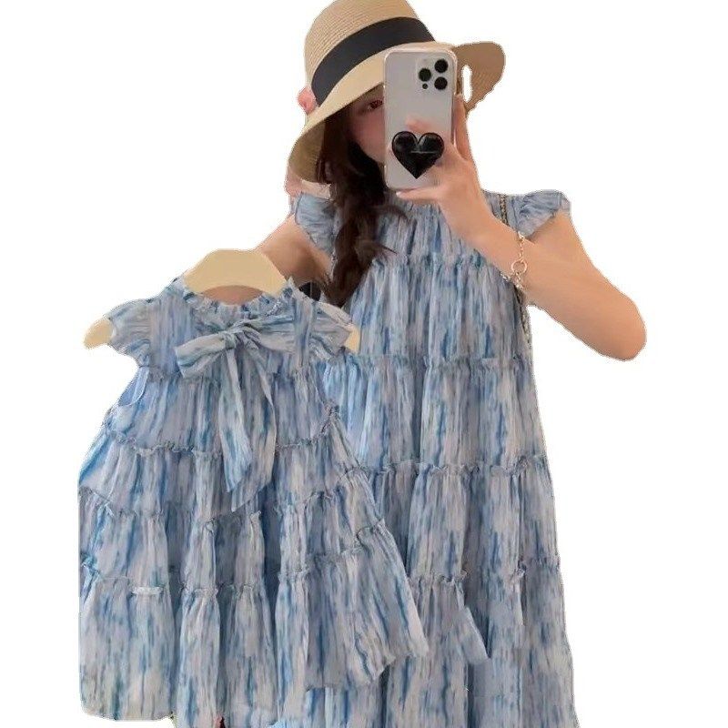 亲子装女童裙子一字肩泡泡袖连衣裙夏装新款童装甜美母女装夏季潮