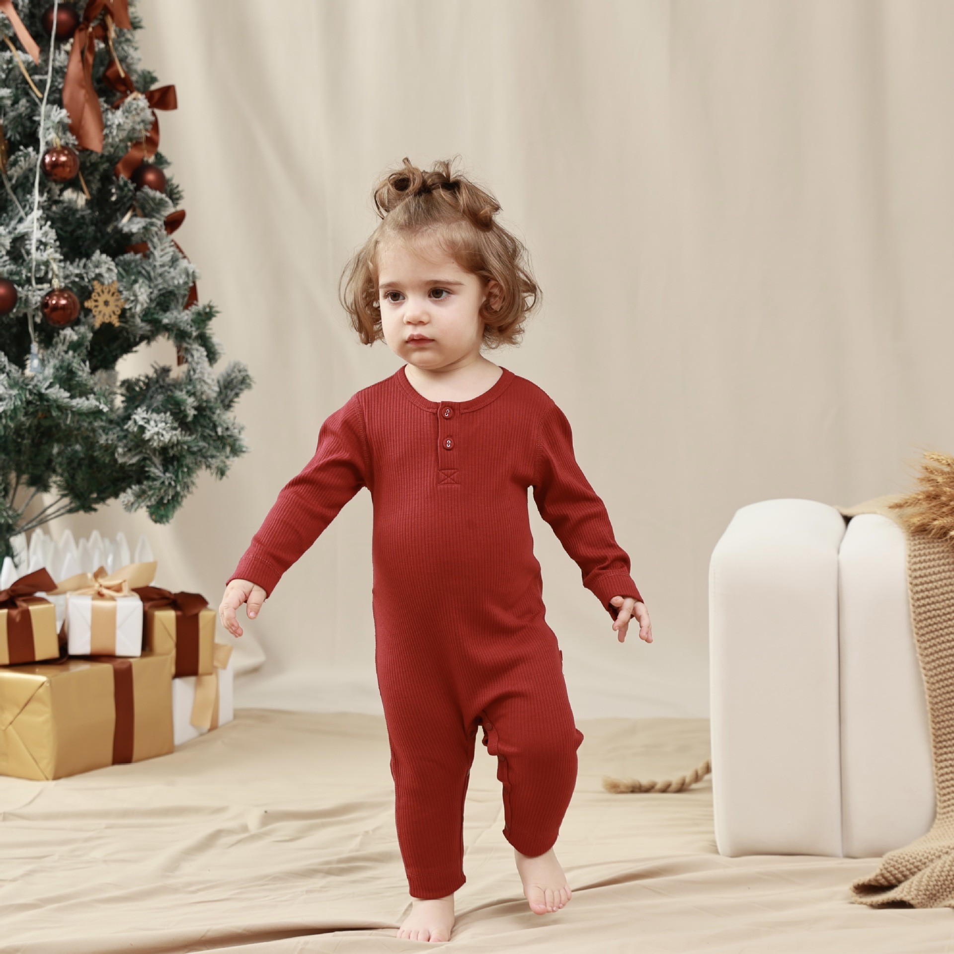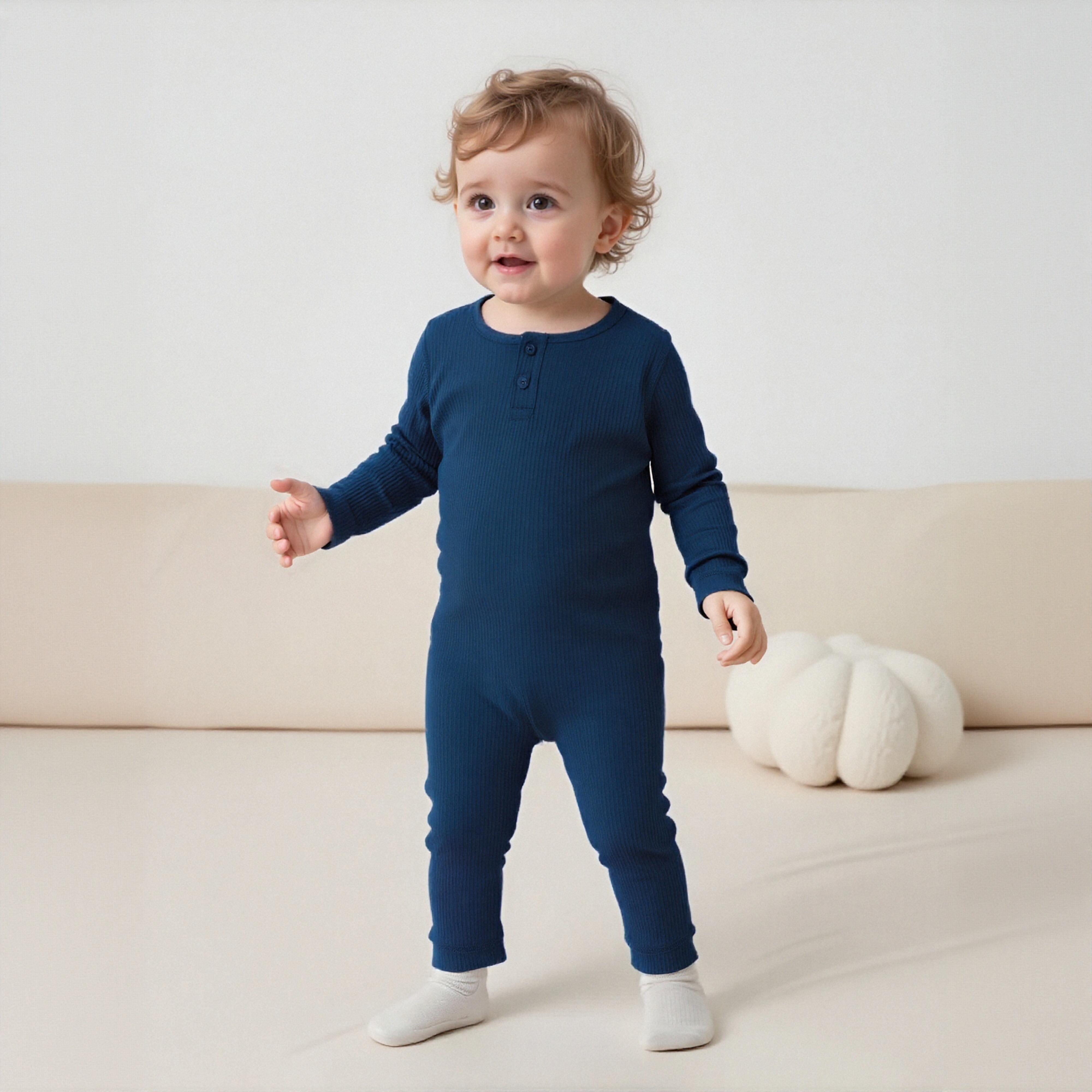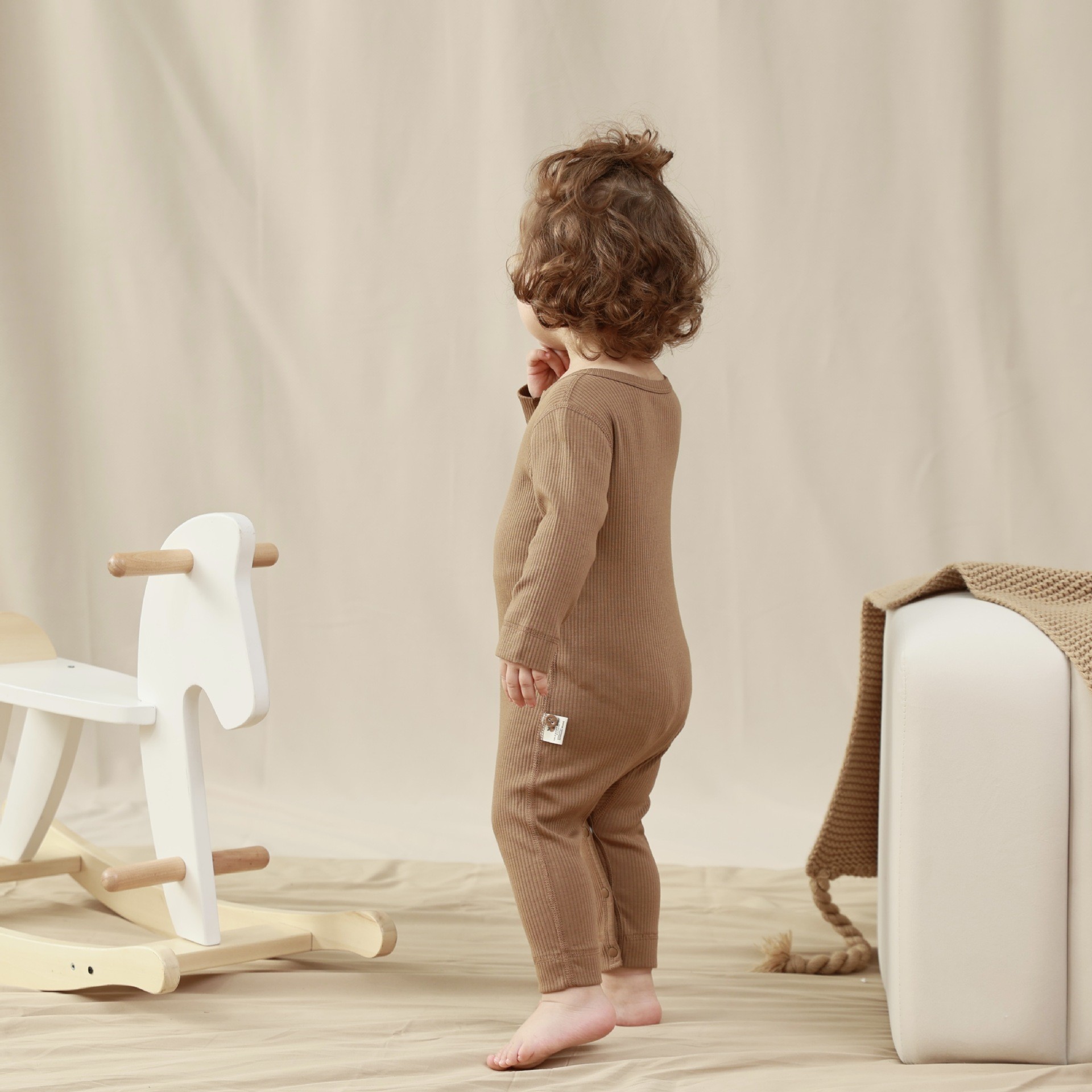 ins婴儿连体衣莫代尔棉坑条男女宝宝长袖爬服睡衣A类无骨春秋冬季