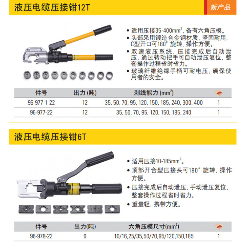 。进口STANLEY手动液压电缆压接钳6吨/12T压线钳端子钳96-978/977