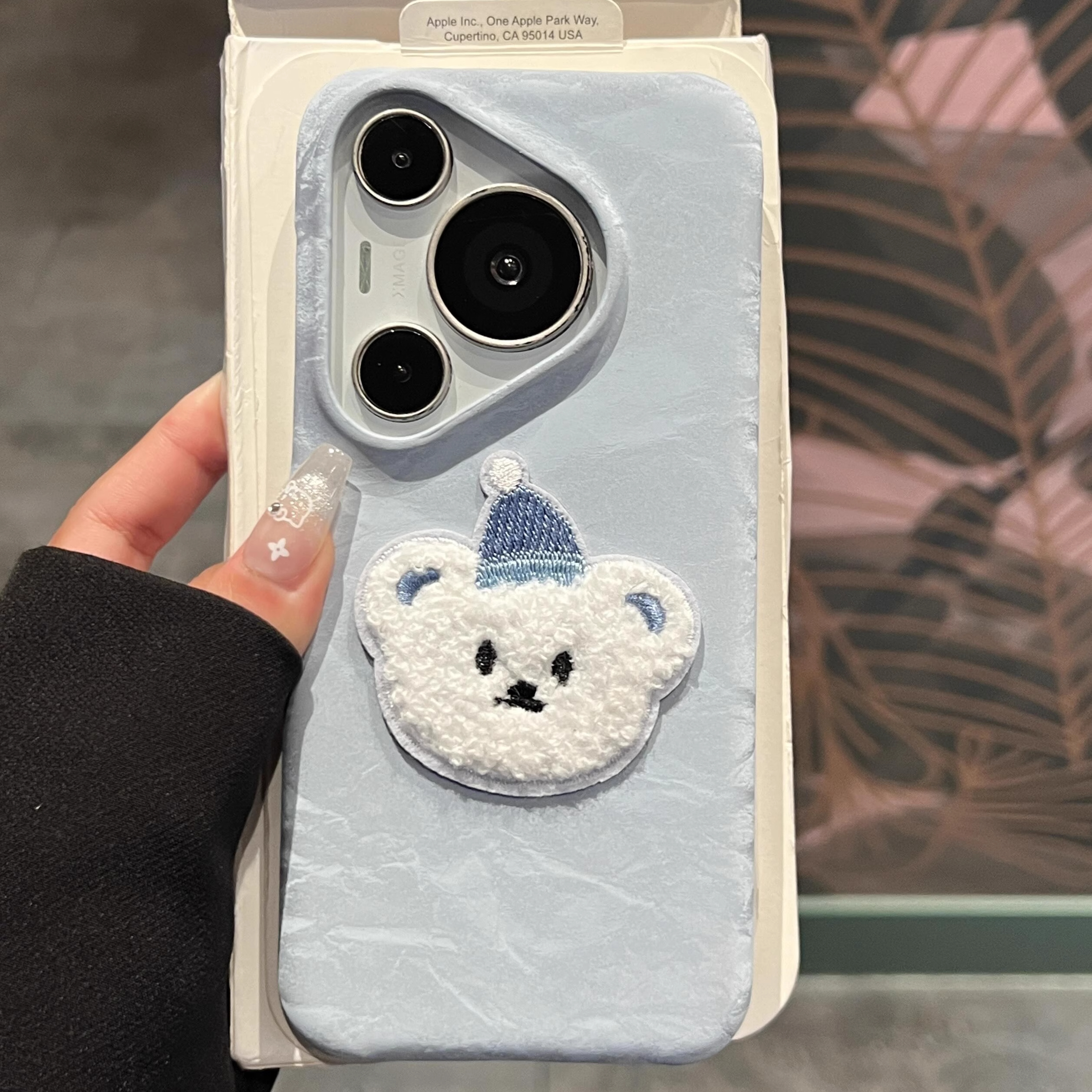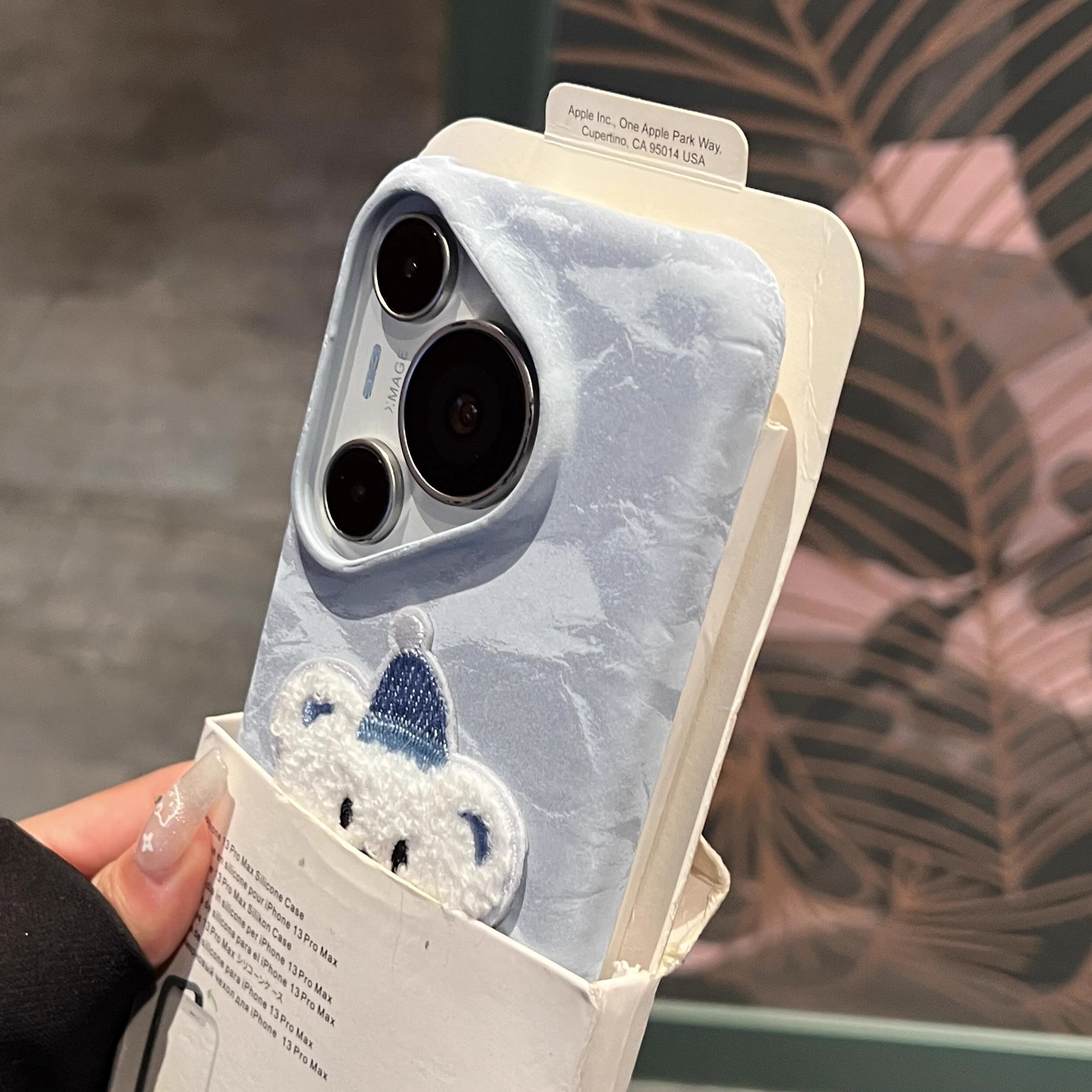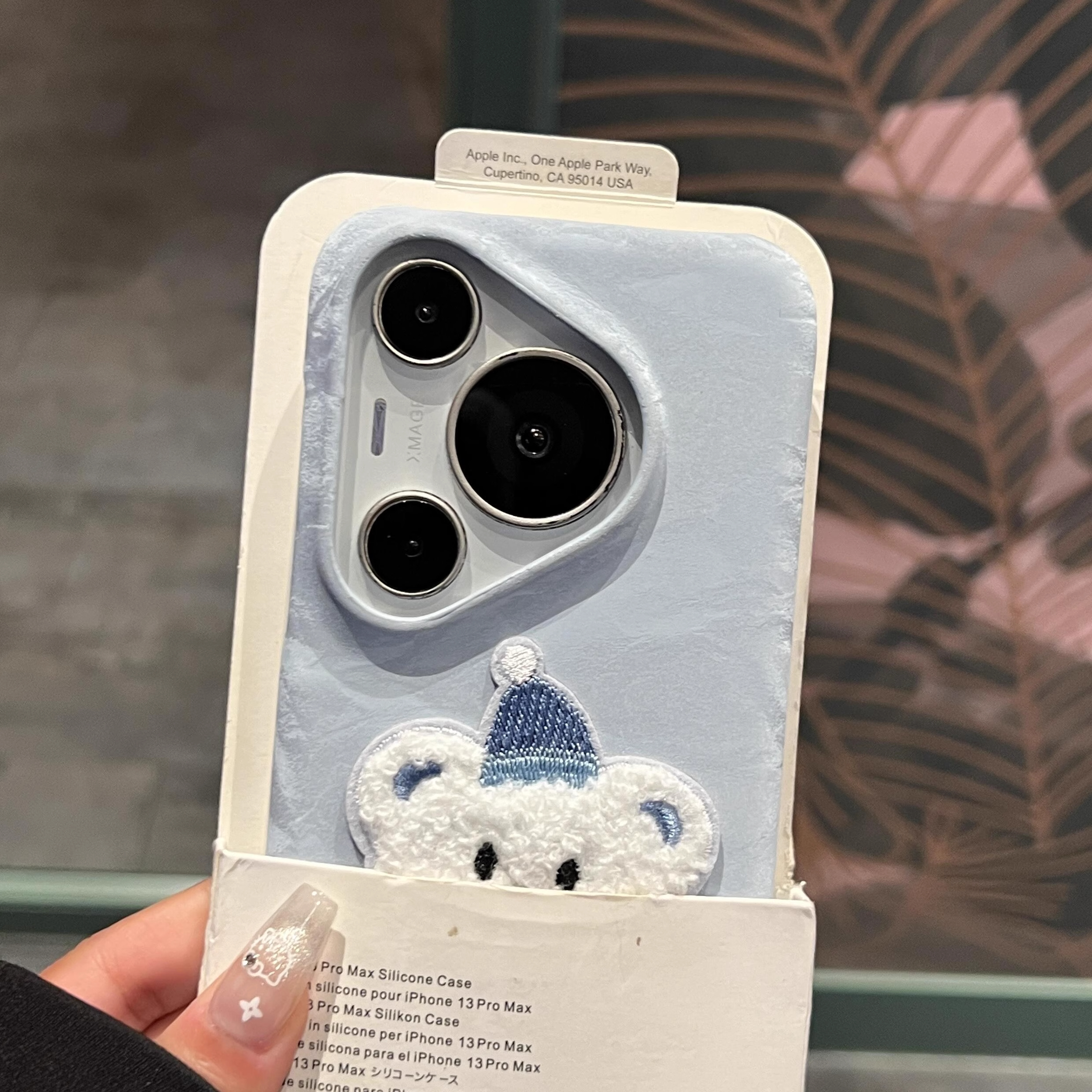 可爱蓝帽丝绒小熊手机壳x60荣耀300适用X50华为Pura70Ultra半包肤感Mate70pro+散热magic7/6Pro卡通防摔耐脏