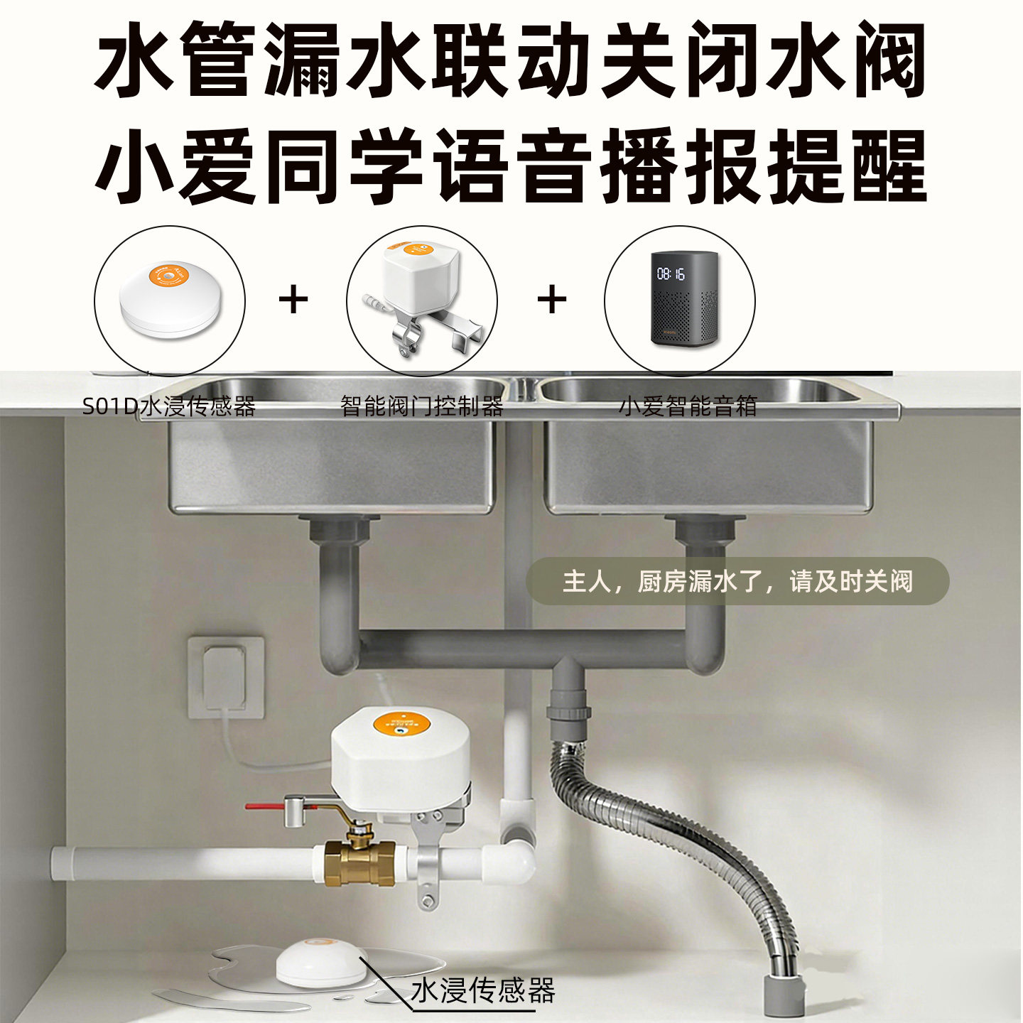 已接入米家水浸传感器卫士漏水溢水自动感应智能探测报警器联动