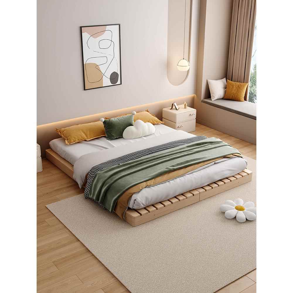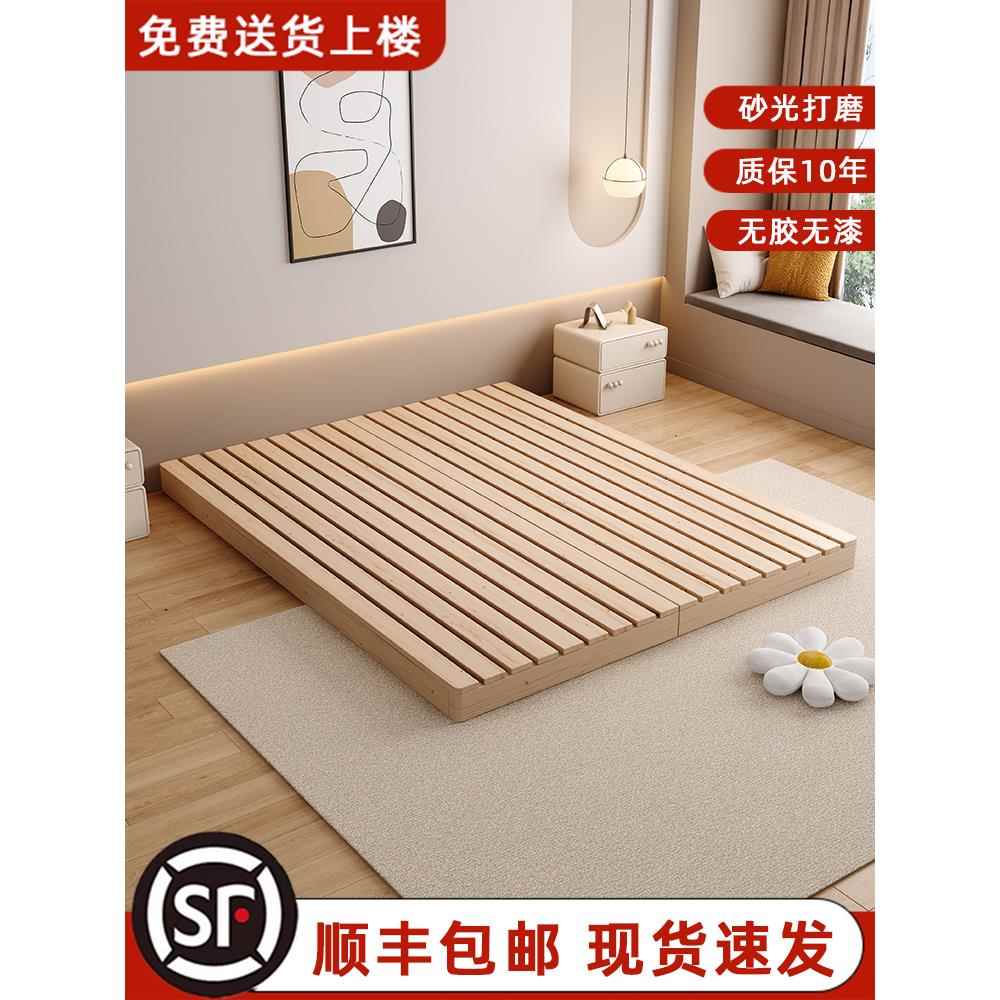 无床头榻榻米矮床架落地日式地台现代简约小户型卧室实木排骨架床