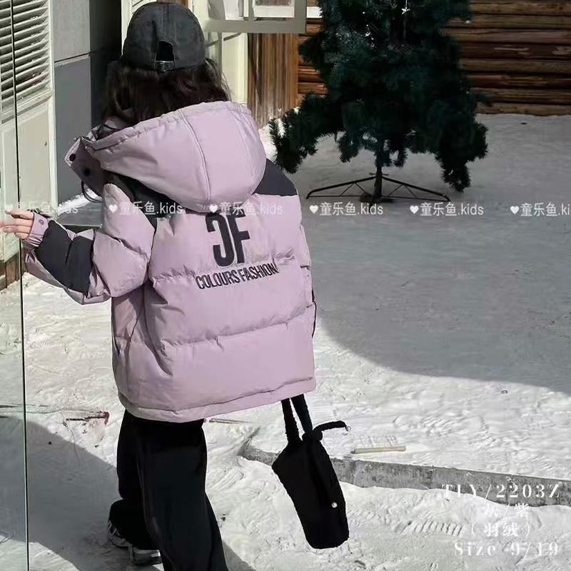 童乐鱼童装冬新款男童女童90白鸭绒羽绒服杜邦连帽儿童外套2203