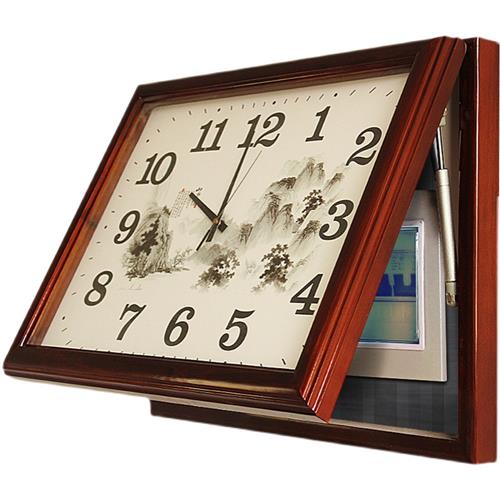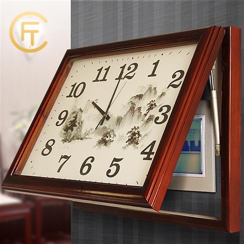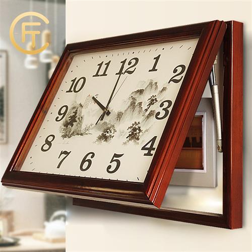 积匠实木挂钟电表箱遮挡欧式客厅静音钟表装饰画新中式长方形挂表