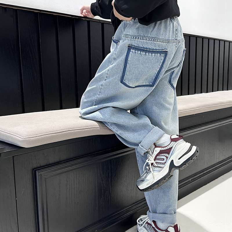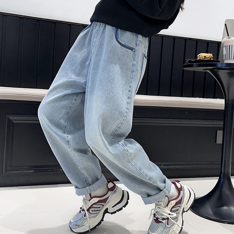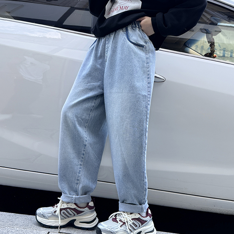 【清仓】女童牛仔裤春秋中大童秋季宽松直筒长裤儿童秋款潮酷裤子