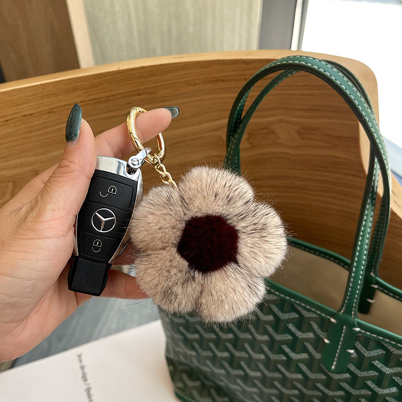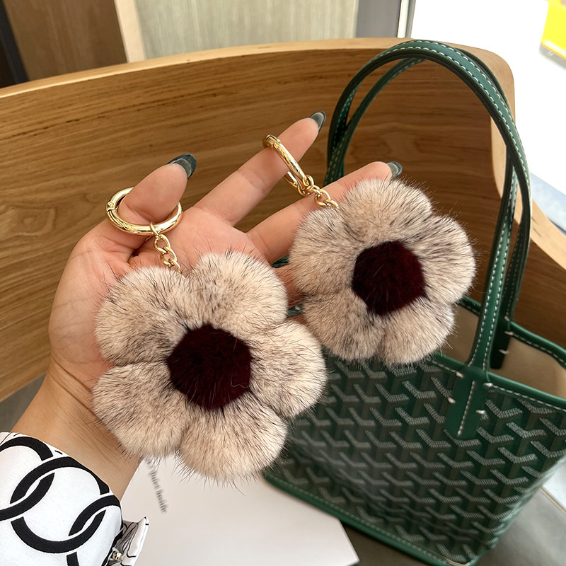 韩国个性创意简约水貂毛花包包挂件可爱太阳花毛绒网红汽车钥匙扣
