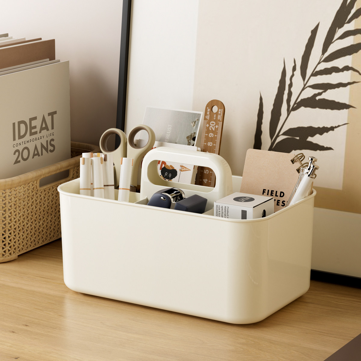 手提清洁工具收纳篮家用厨房多功能分隔杂物篮移动桌面储物收纳筐