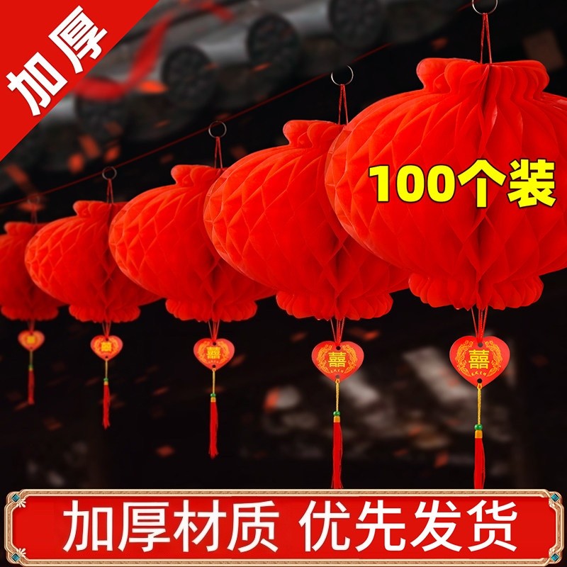 2026新款纸灯笼装饰结婚小灯笼红色树上挂饰院子户外婚庆节日蜂窝