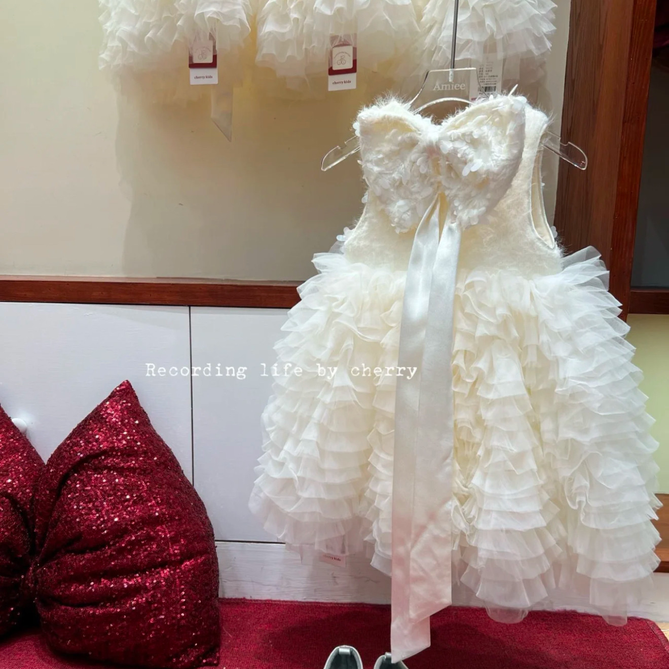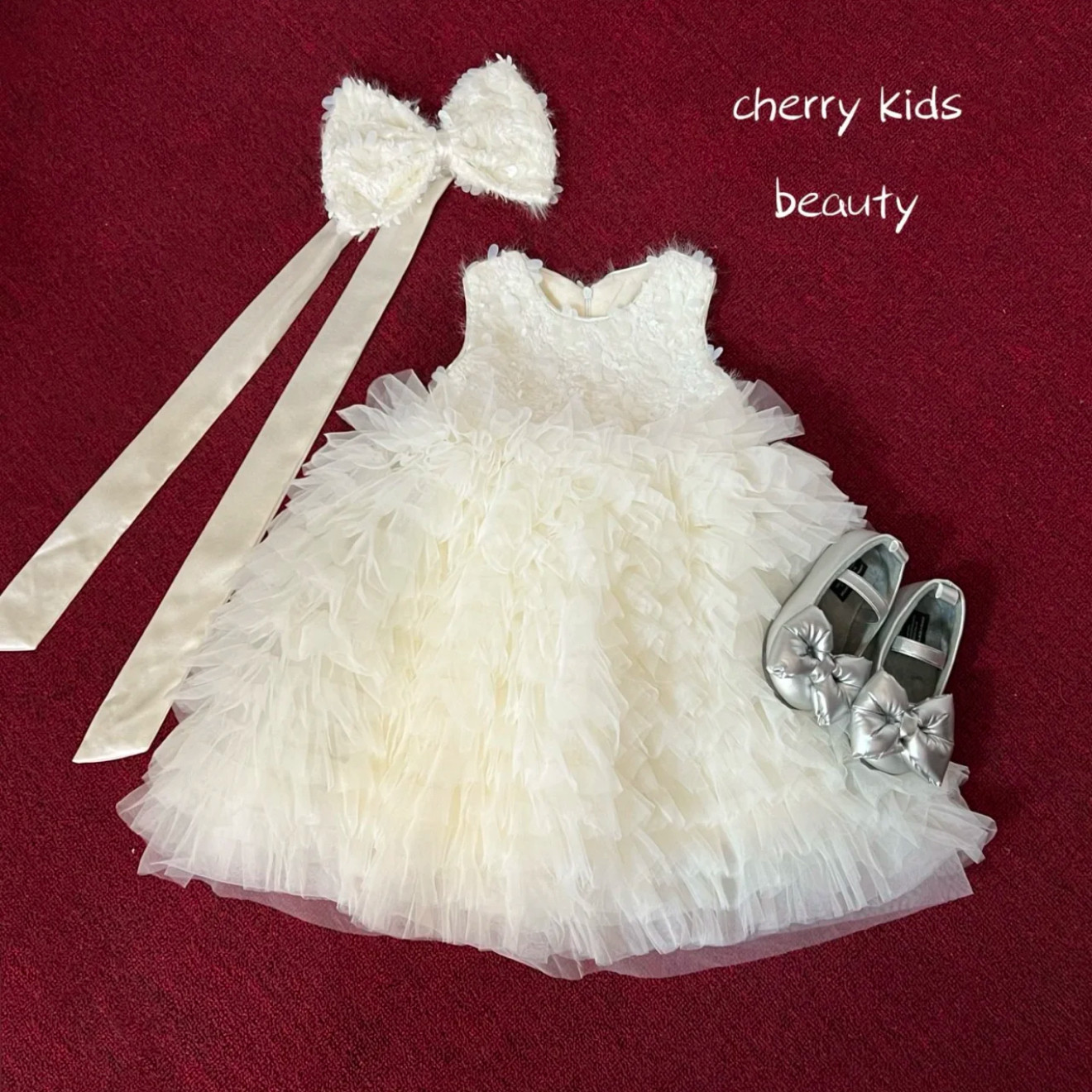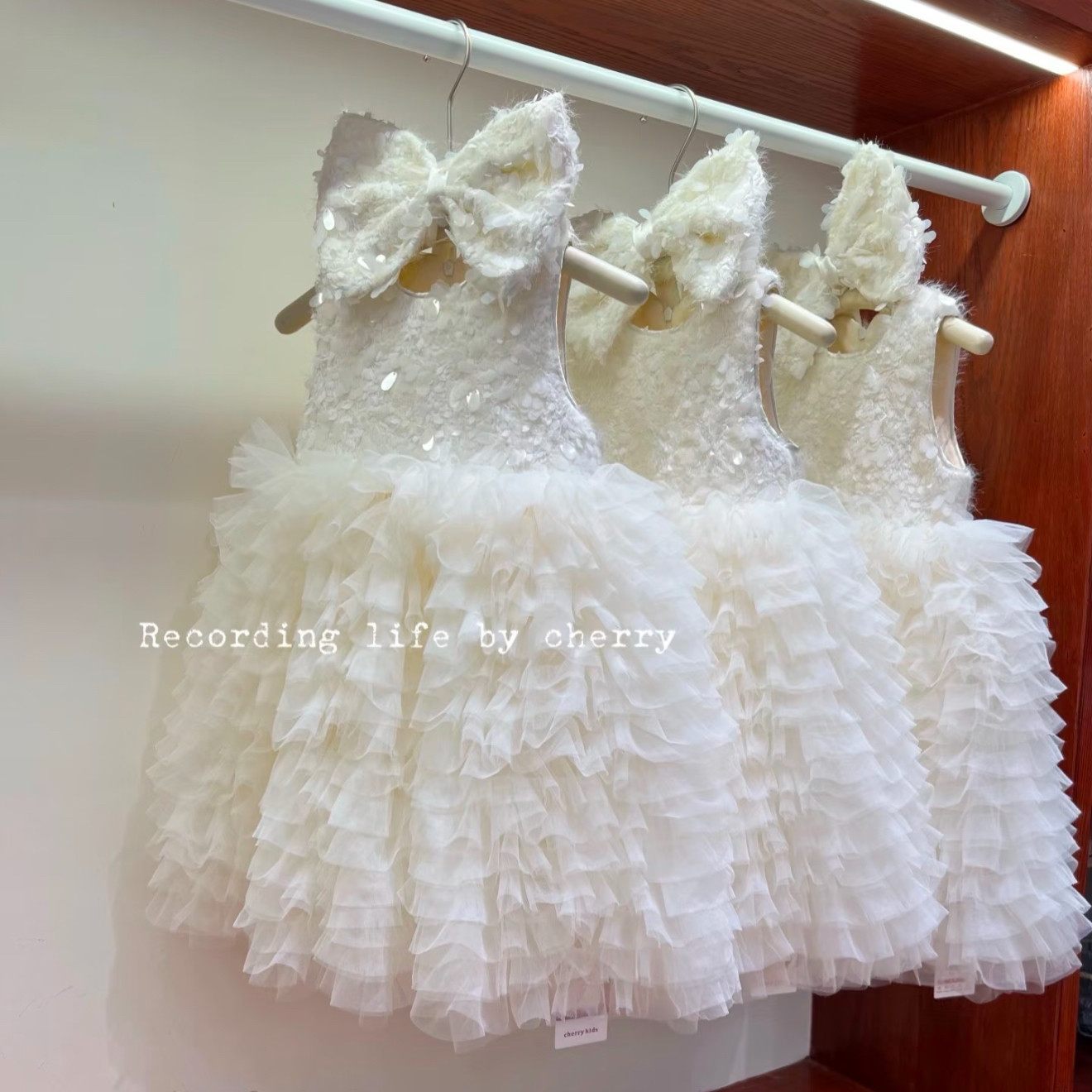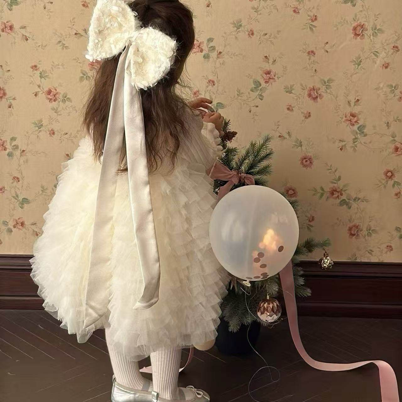 女童白色加绒蛋糕蓬蓬生日礼服
