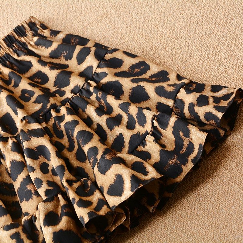 女士雪纺豹纹半身裙夏季新款韩版拼接百褶短裙显瘦洋气a字蓬蓬裙