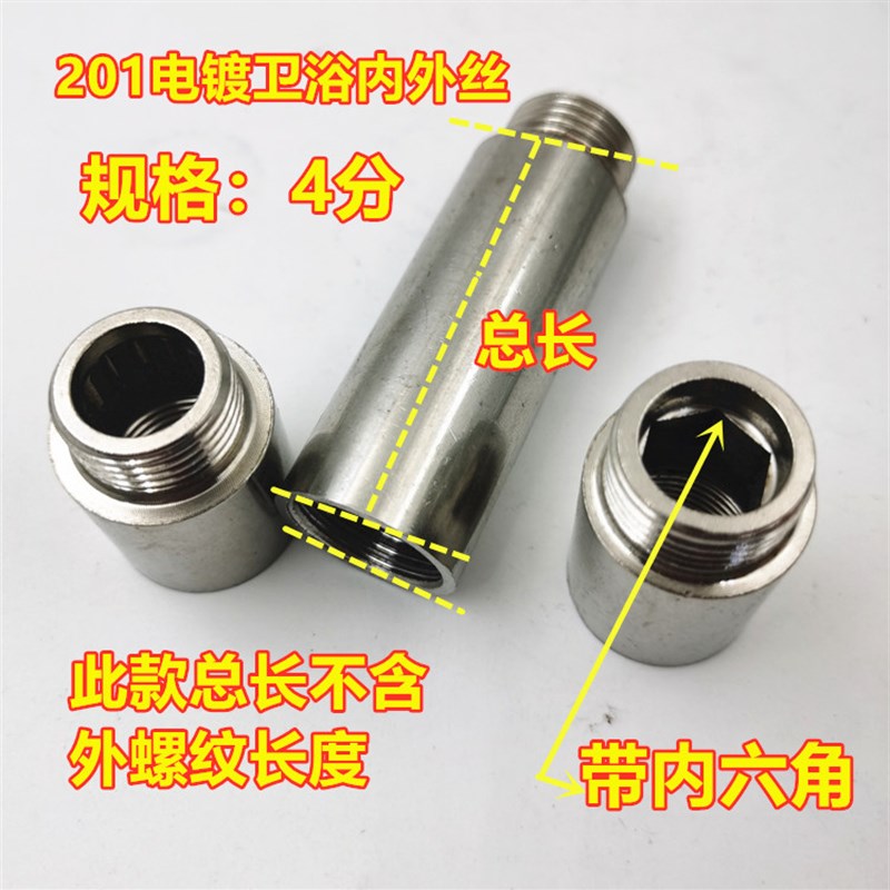 304不锈钢内外丝1分2分3分4分2寸直接 水管煤气管延长管接头DN32
