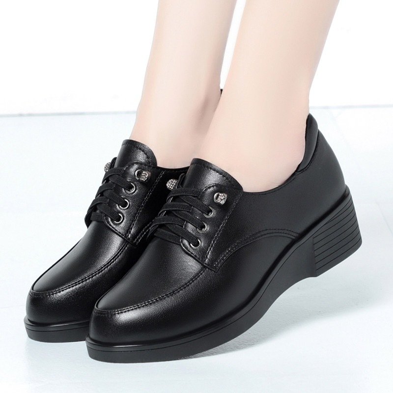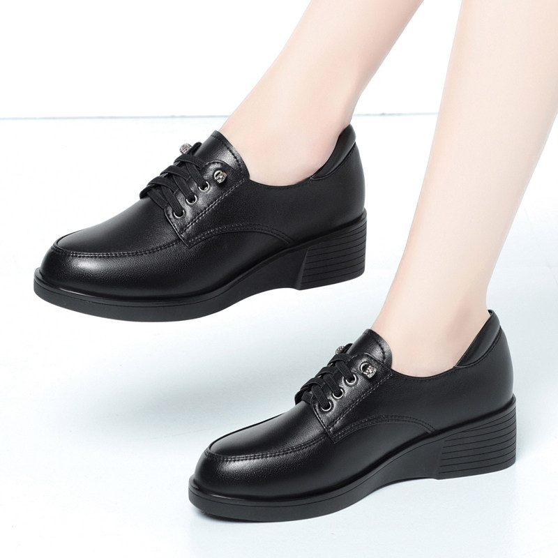 软皮软底系带单鞋坡跟工作鞋