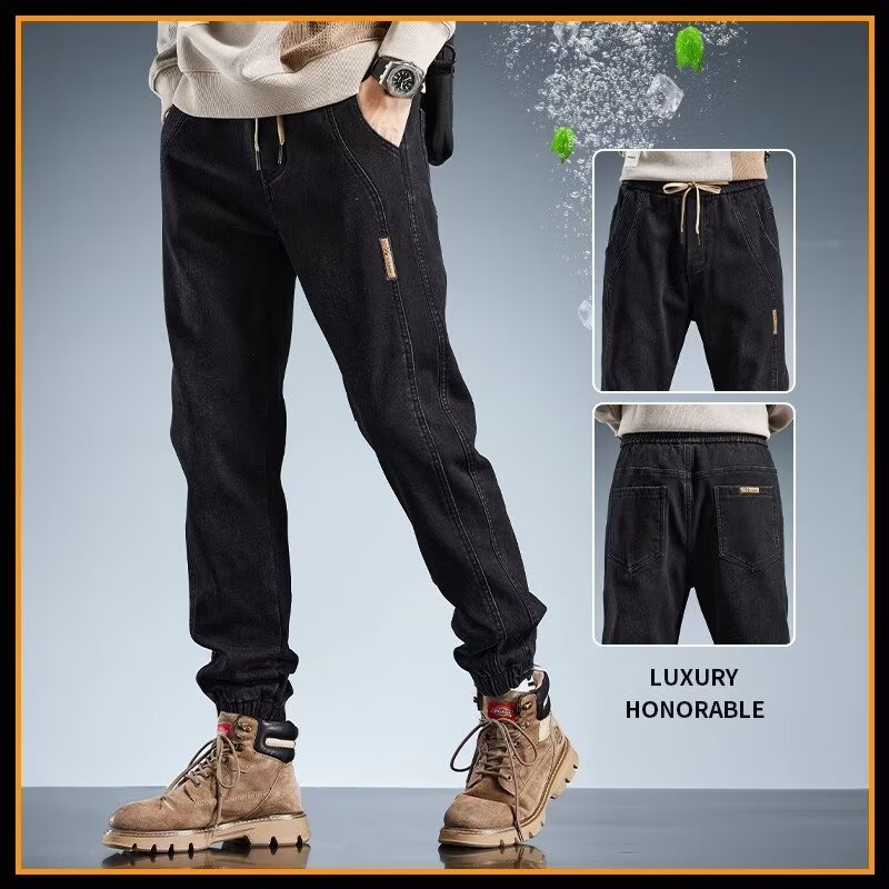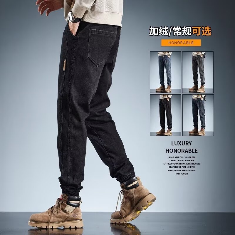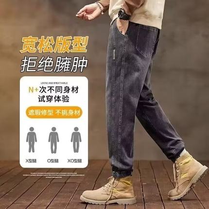 水洗牛仔裤男士春秋季新款束脚裤潮流百搭工装哈伦裤子男生休闲裤