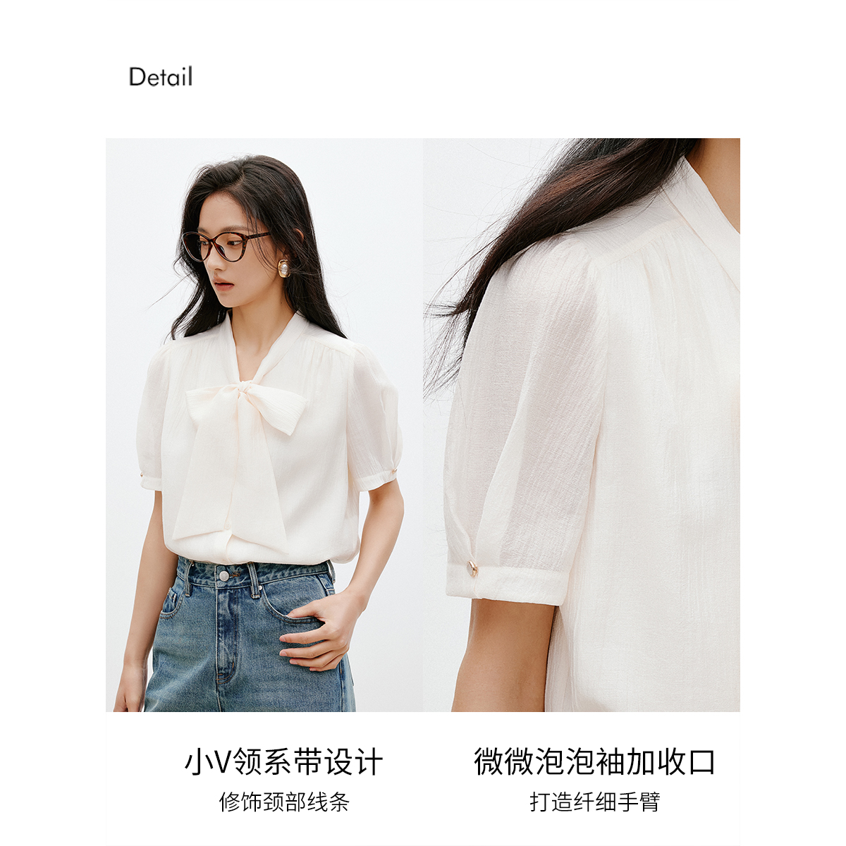 衣香丽影白色飘带真丝雪纺衬衫女