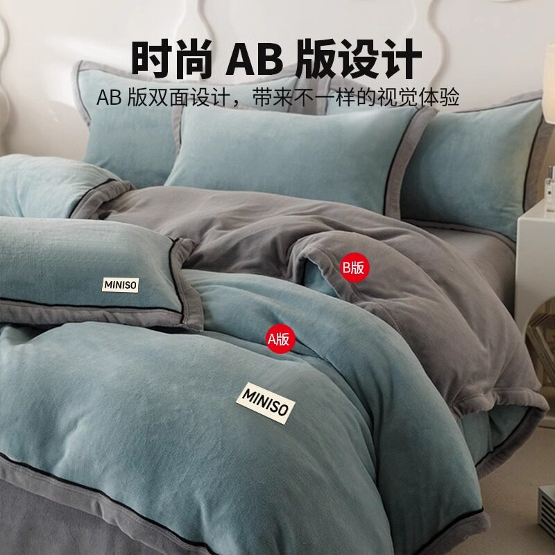 名创优品床上四件套双面牛奶绒珊瑚绒冬季床单被套罩2025新款加厚